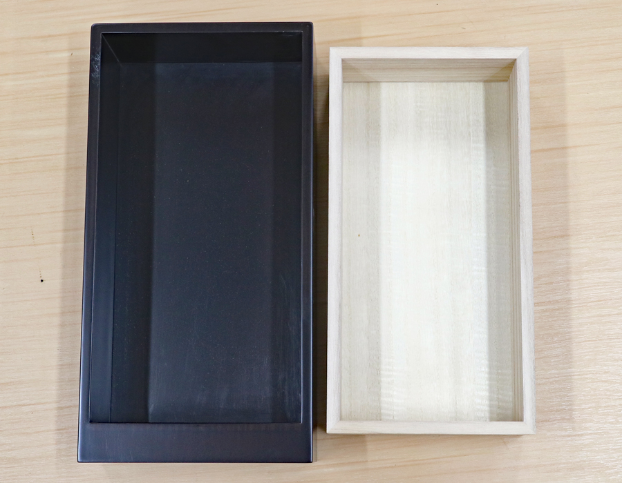 中の色の薄い箱は桐箱で作成しております。
