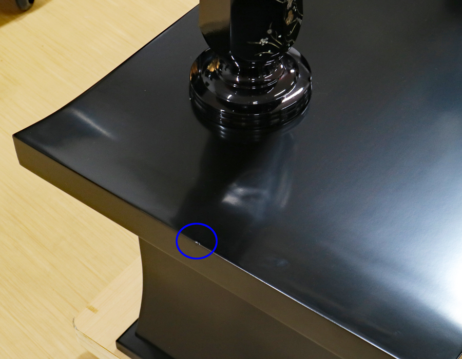 経机の前方下部に上記お写真の傷がございます。