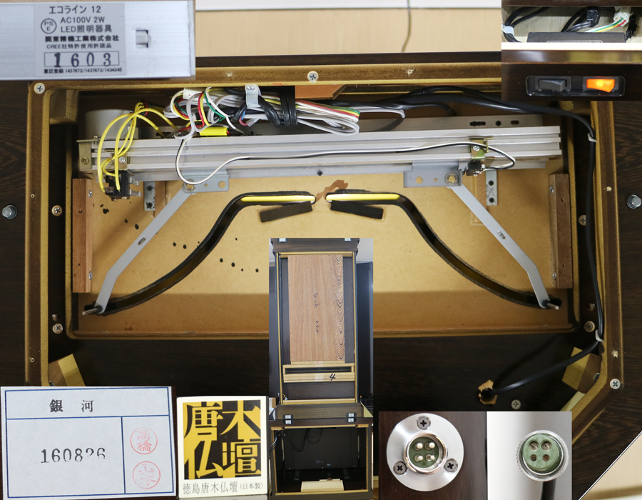ご本尊様を御安置するための吊り金具は押し込みながら上下に調整することができます。