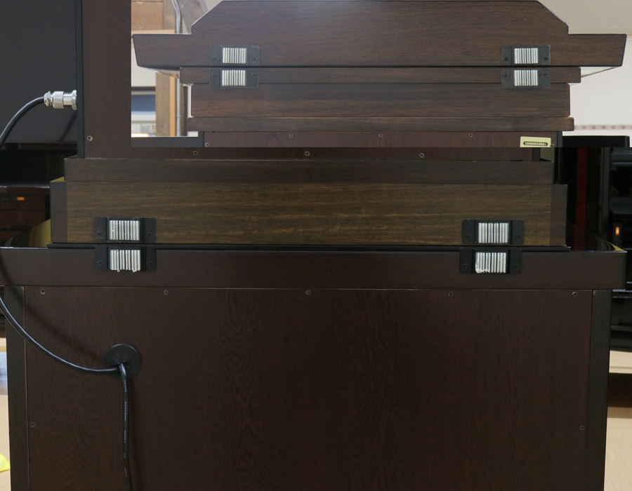 屋根と本体の間・本体と下台の間に耐震金具がついております。