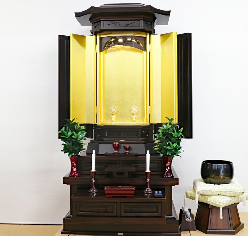 お厨子は本金箔厨子となります。本金箔と金色塗装では輝きが違うのは一目瞭然です。