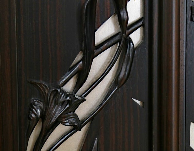黒檀の無垢板をふんだんに使用して、白ゆりの彫りを立体的に仕上げております。