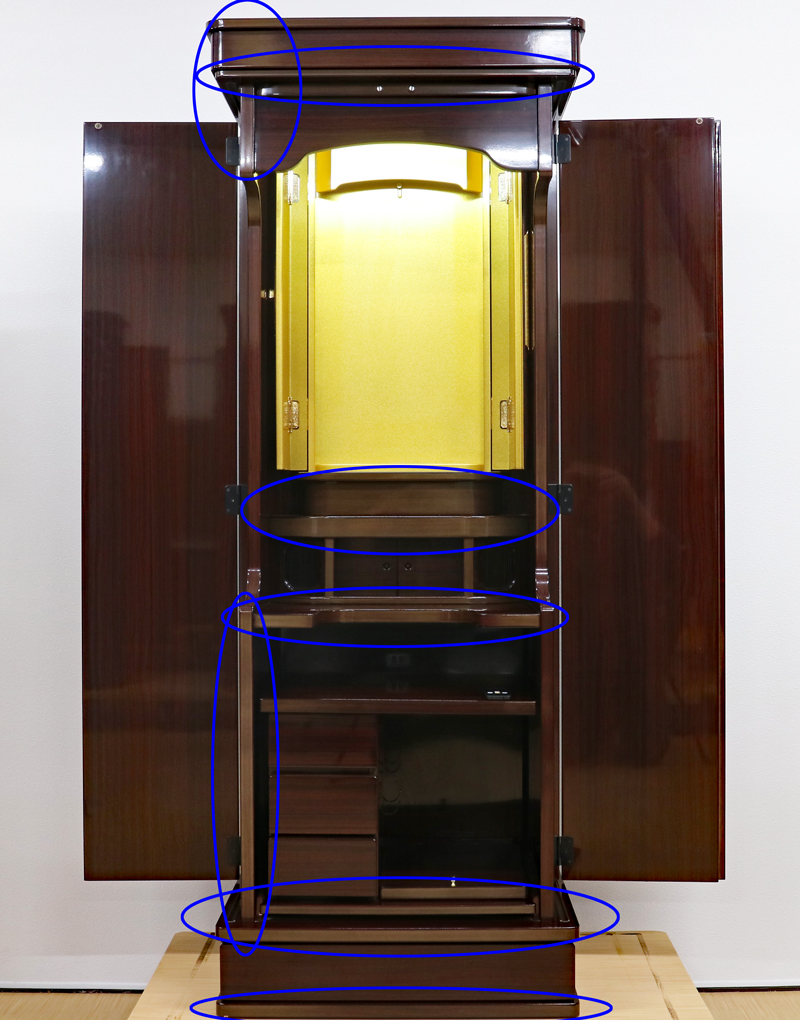 内部にはLED照明が設置されておりますのでご本尊様を明るく照らしてくれます。