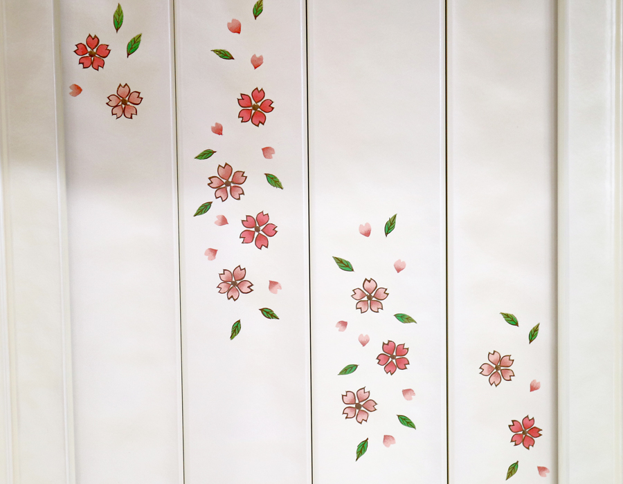 厨子扉には、静岡県に伝わる伝統技法「駿河蒔絵」で風に舞う綺麗な流れ桜の蒔絵が施されております。