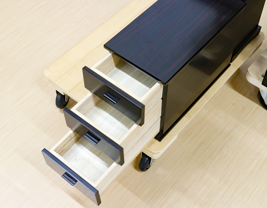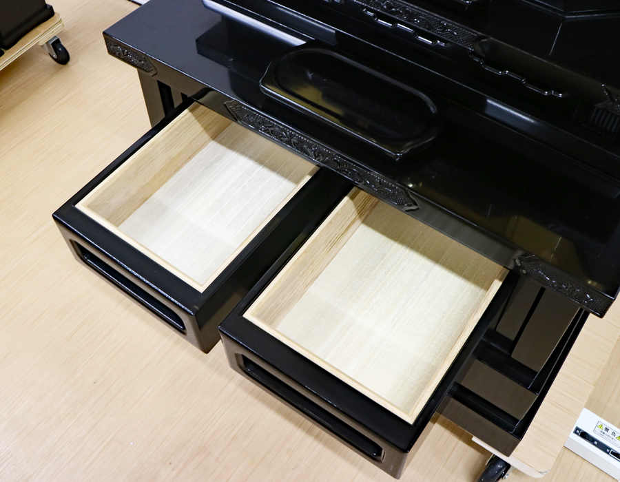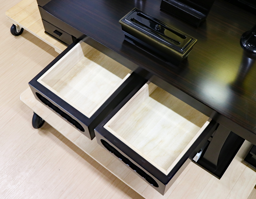 経机と下台の引き出しは、二重箱になっております。