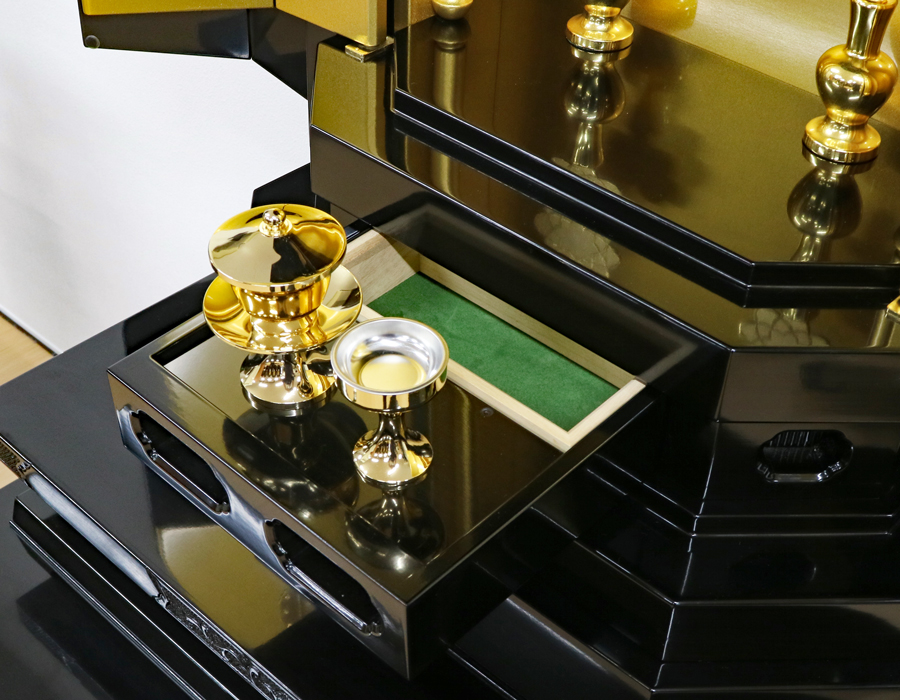 仏壇本体にも収納式の経机がございます。