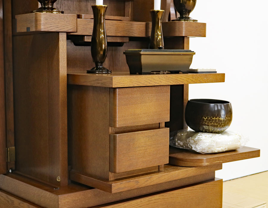 押し込み式の大戸ですので、押し込むことによって斜めからでもご本尊様を拝すことができます。