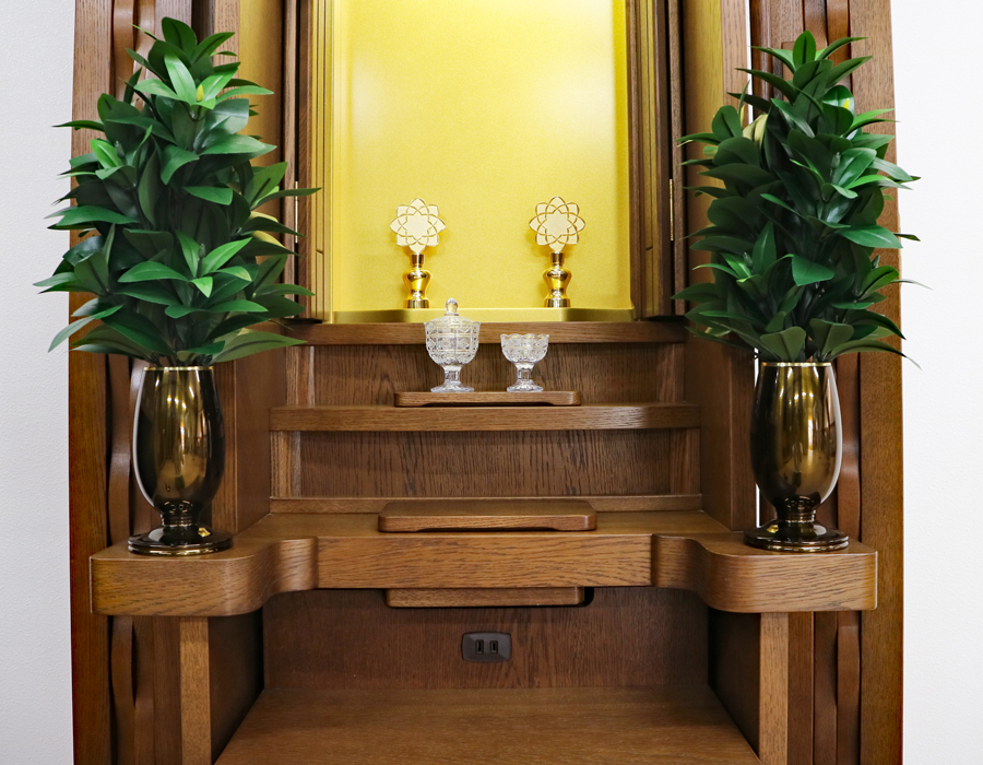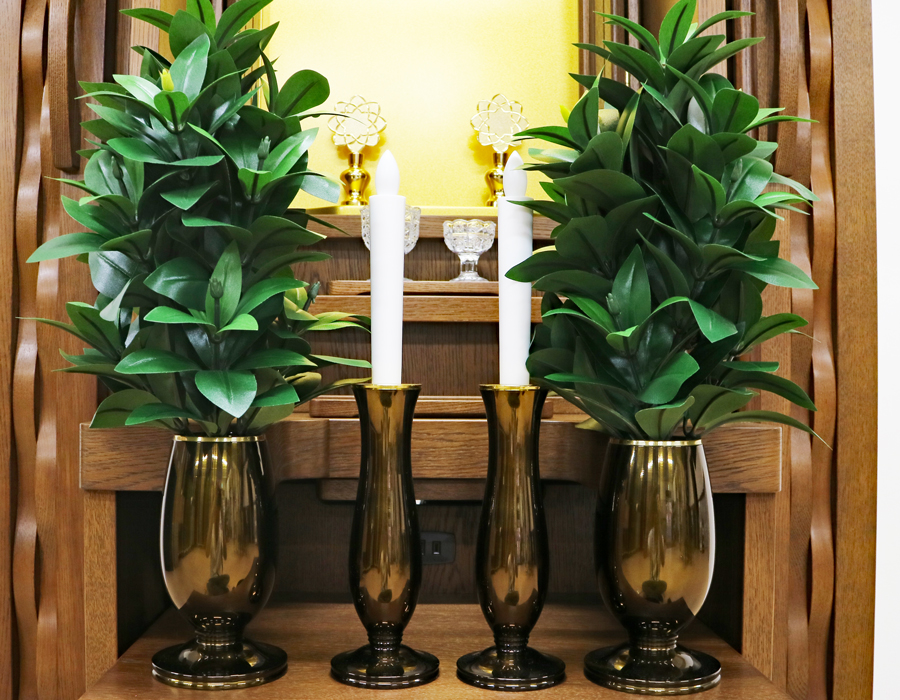 付属の灯立・花立は銅器生産で有名な高岡産の高級銅器仏具になります。