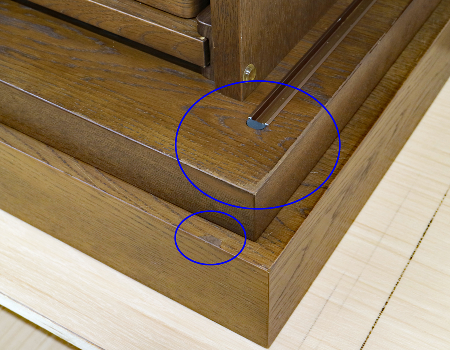 上記お写真の青丸の箇所(仏壇下部・置台)を着色補修いたしました。