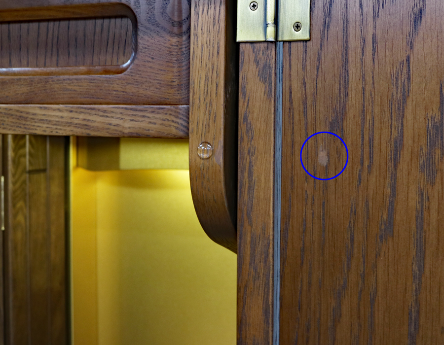 上記お写真の青丸の箇所(大戸内側)を着色補修いたしました。