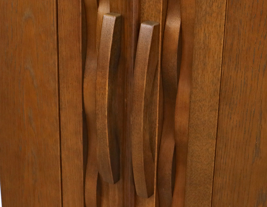 木のぬくもりを感じるアンティークな感じのおしゃれなデザインの家具調中古仏壇です。 押し込み式の大戸ですので、押し込むことによって斜めからでもご本尊様を拝すことができます。 和室・洋室・リビングダイニングにも最適です。