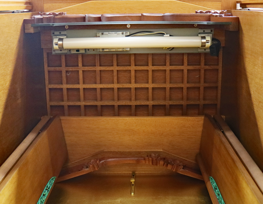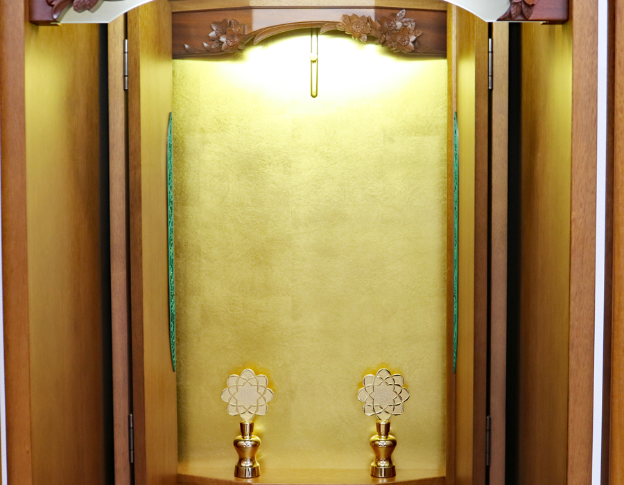 内部には蛍光灯照明も付属していますのでご本尊様を明るく照らしてくれます。