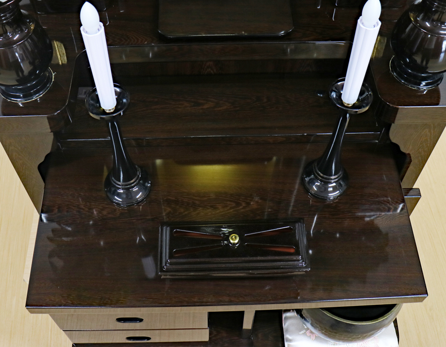 お仏壇内上部に2箇所6wの蛍光灯が設置されております。