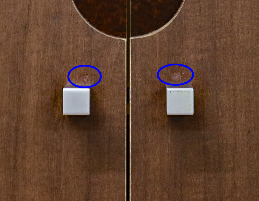 上記お写真の青丸の箇所に剥がれがありましたので着色修正いたしました。