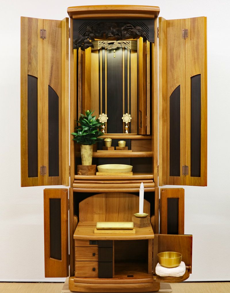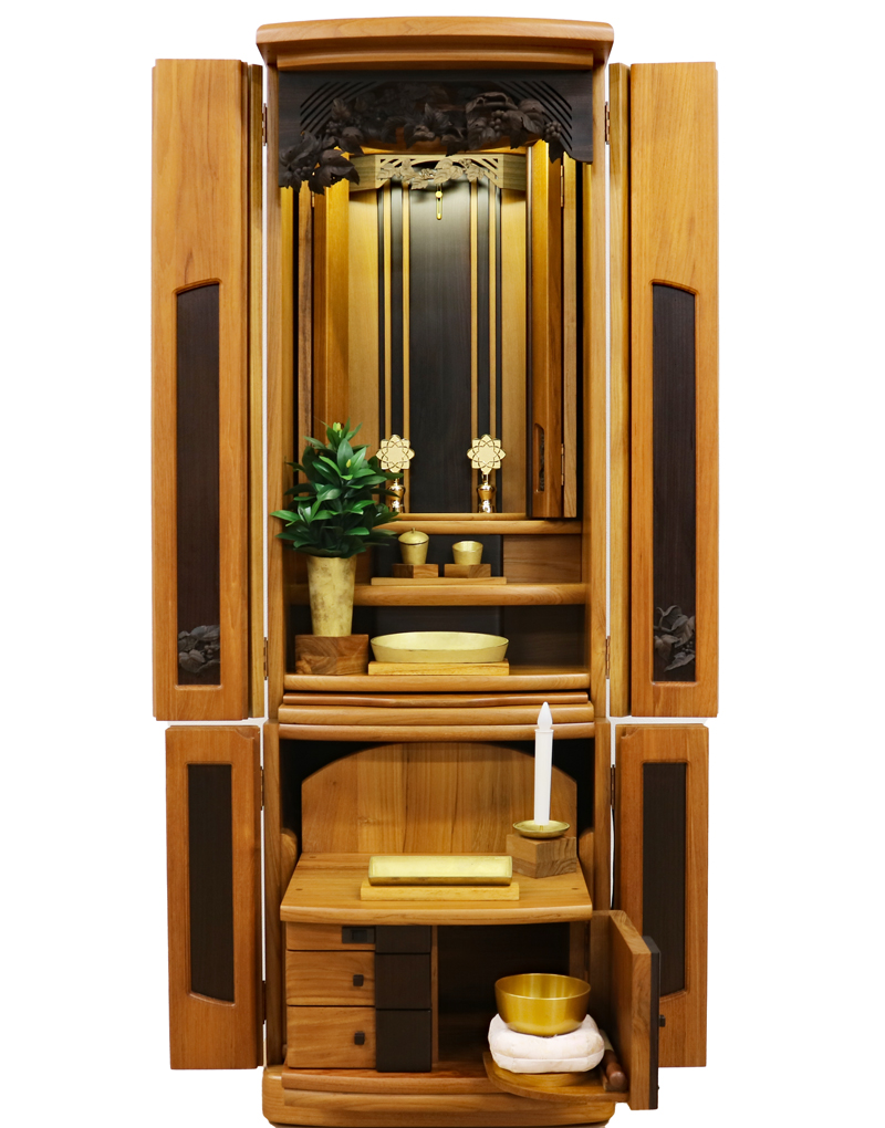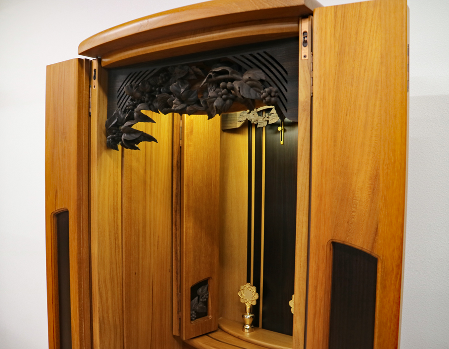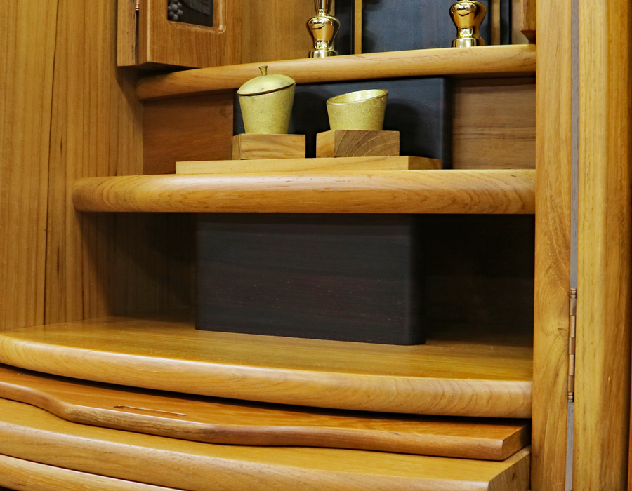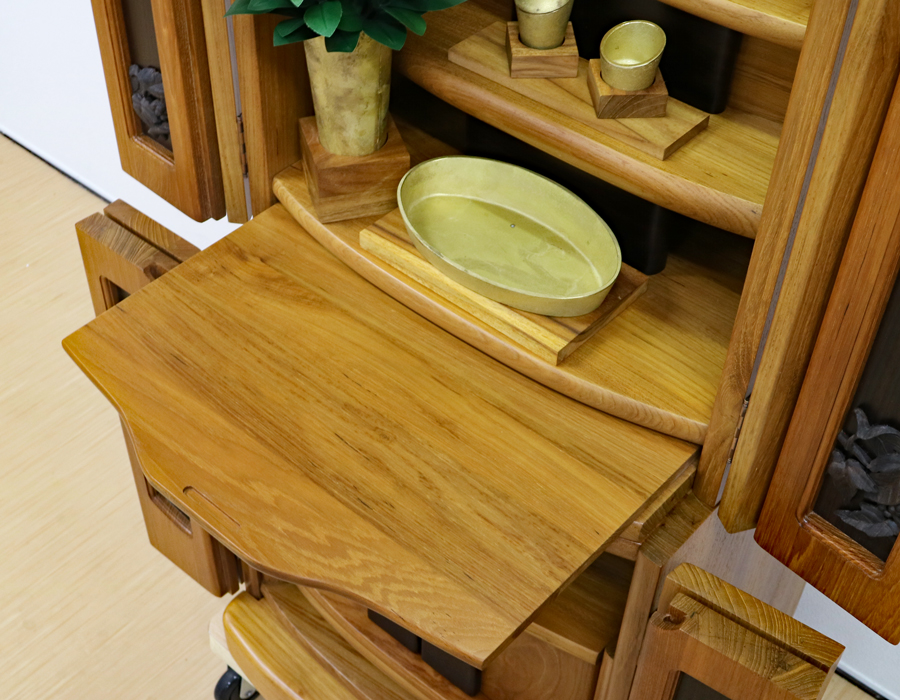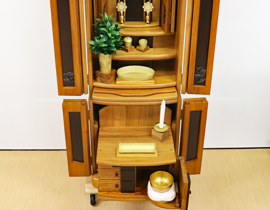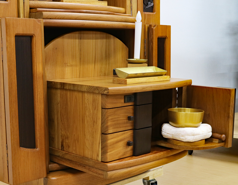 扉が2箇所に分けられていますので、厨子だけ開閉ができスマートにご安置できます。洋室・一人暮らしにも最適です。