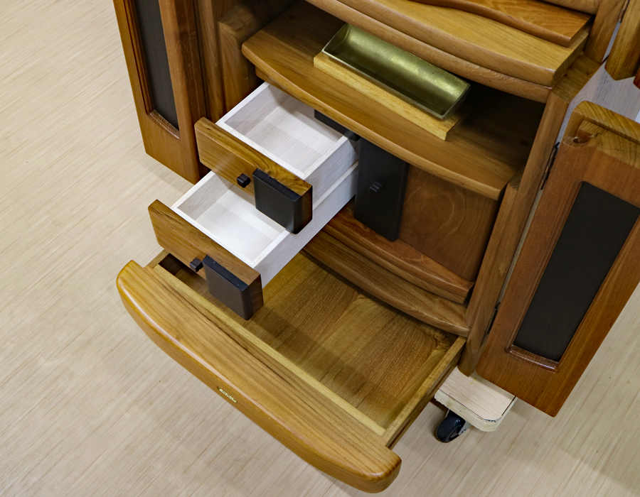厨子内もチーク・本黒檀無垢をふんだんに使用した木のぬくもりを感じるようなデザインとなっております。