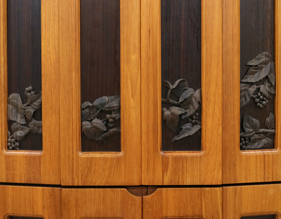 欄間同様に、大戸にも本黒檀無垢による、野ぶどうの彫刻が施されております。
