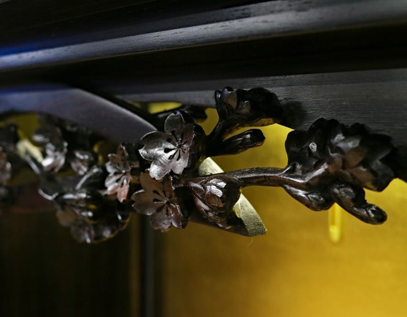 欄間には本黒檀をふんだんに使用した、職人こだわりの桜の彫が施されております。