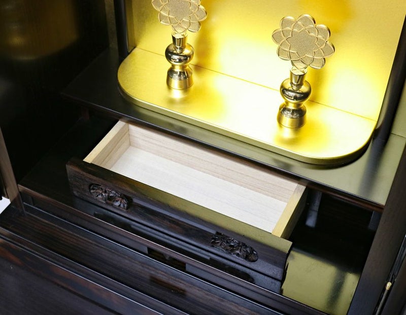 本黒檀をふんだんに使用・本金箔のお厨子など上置き仏壇最高峰のお仏壇となります。