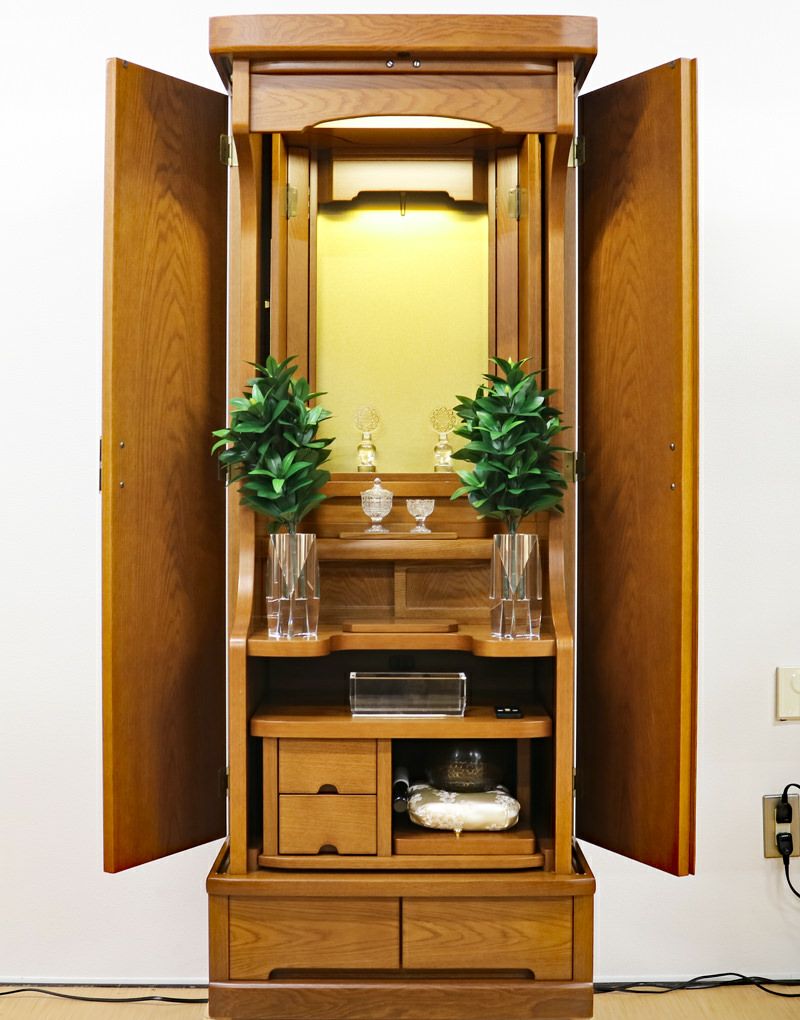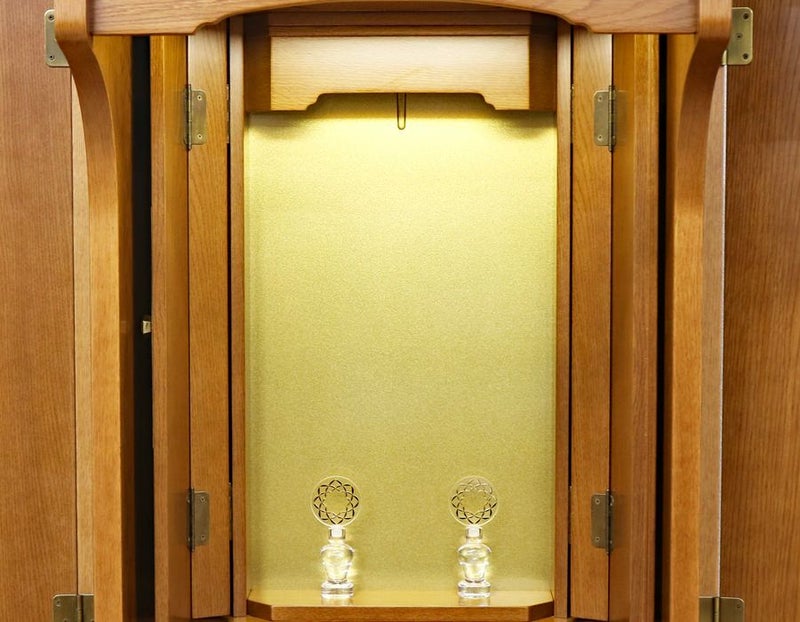 内部には蛍光灯照明も付属していますのでご本尊様を明るく照らしてくれます。