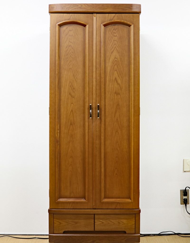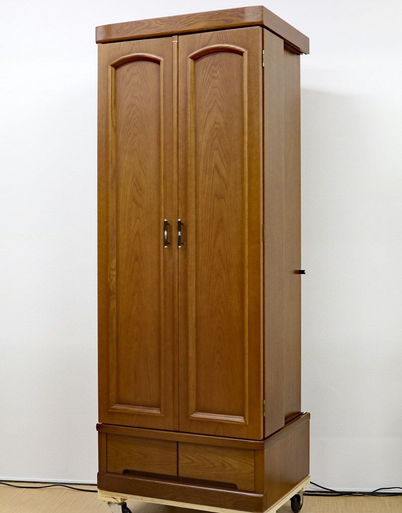 ぬくもりのある杢目、落ち着いた色味でゆったりと勤行・唱題に励むことが出来ます。 厨子扉の金具が特徴的な中古家具調仏壇です。大戸が押し込み式の大戸ですので、押し込むことによって斜めからでもご本尊様を拝すことができます。
