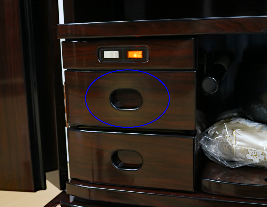 上記お写真の青丸の箇所(引き出し)に日焼けが見られます。