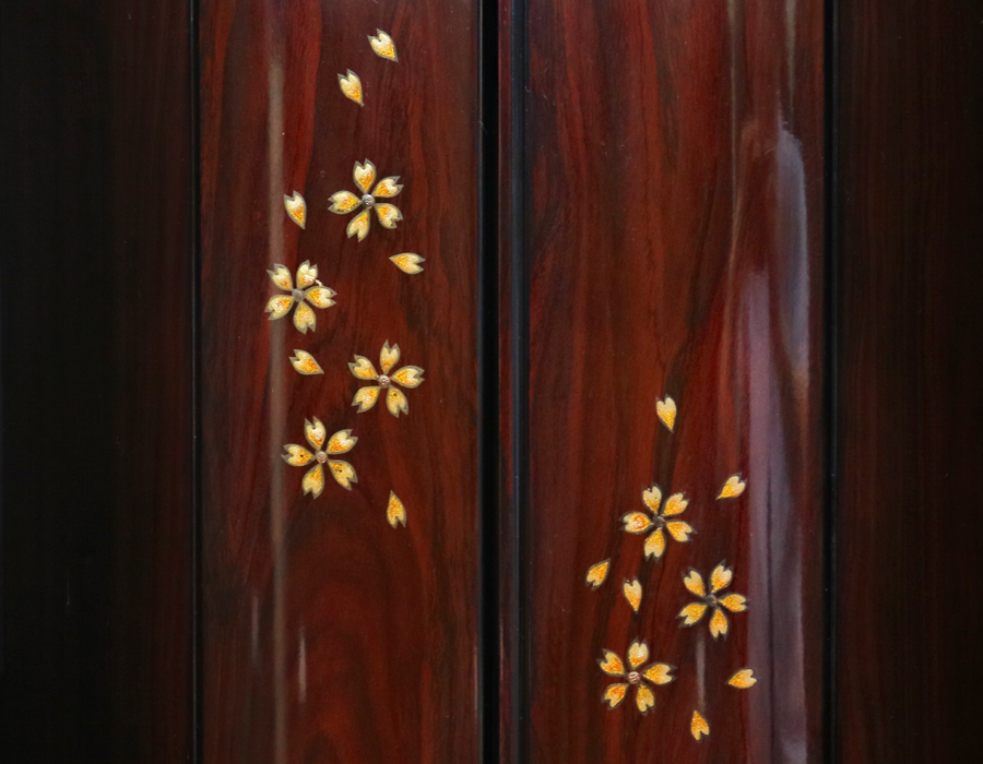 厨子扉には、かわいらしい桜の蒔絵が施されております。