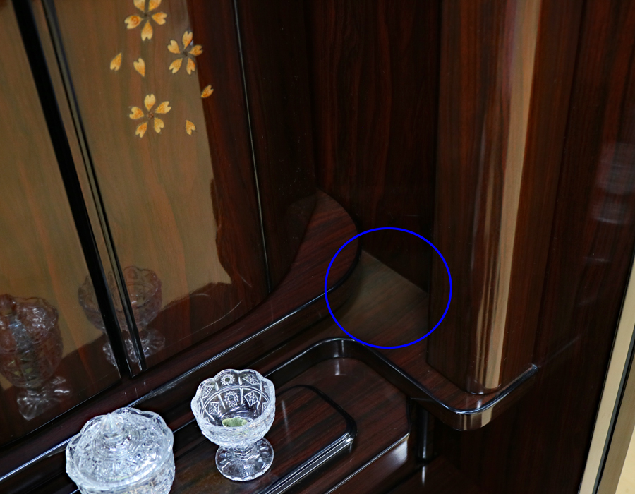 上記お写真の青丸の箇所(厨子両脇)に日焼けが見られます。