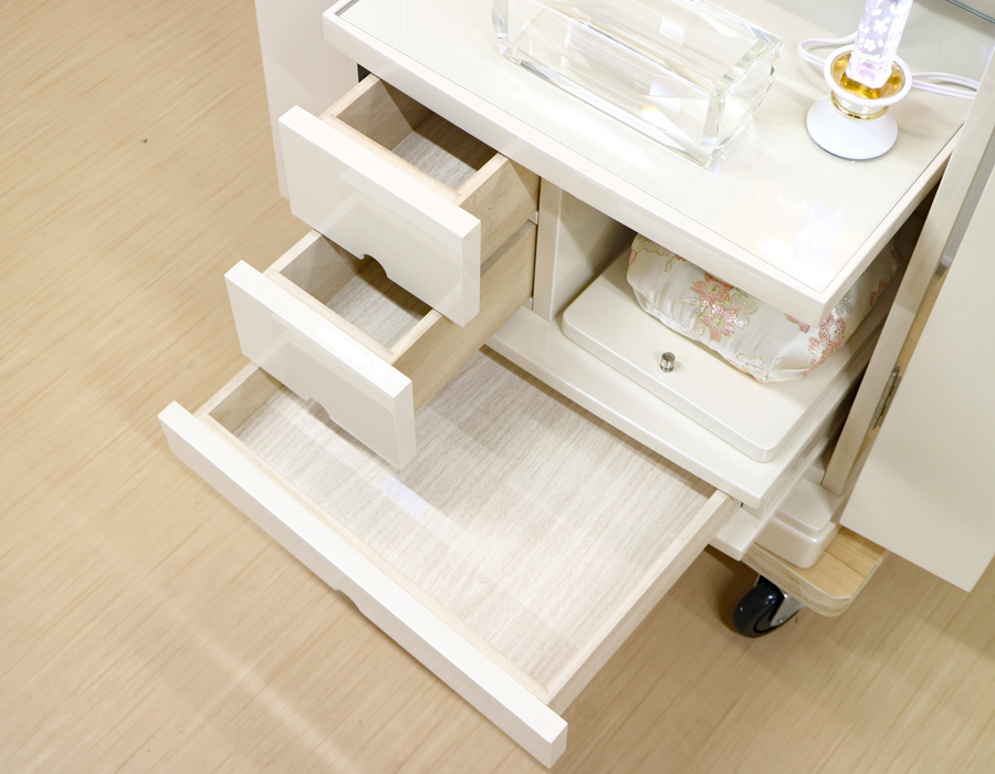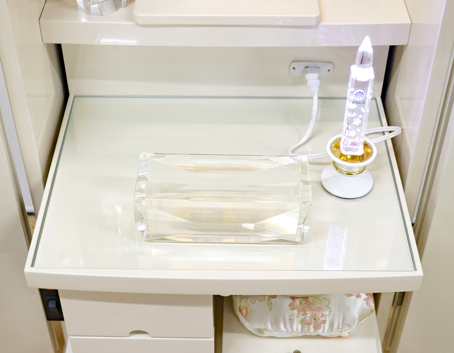 収納経机の天板にはガラス板が設置されており、高級感のあるデザインとなっております。