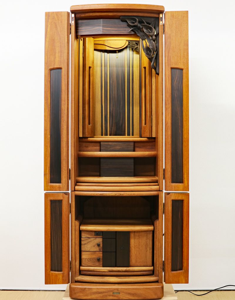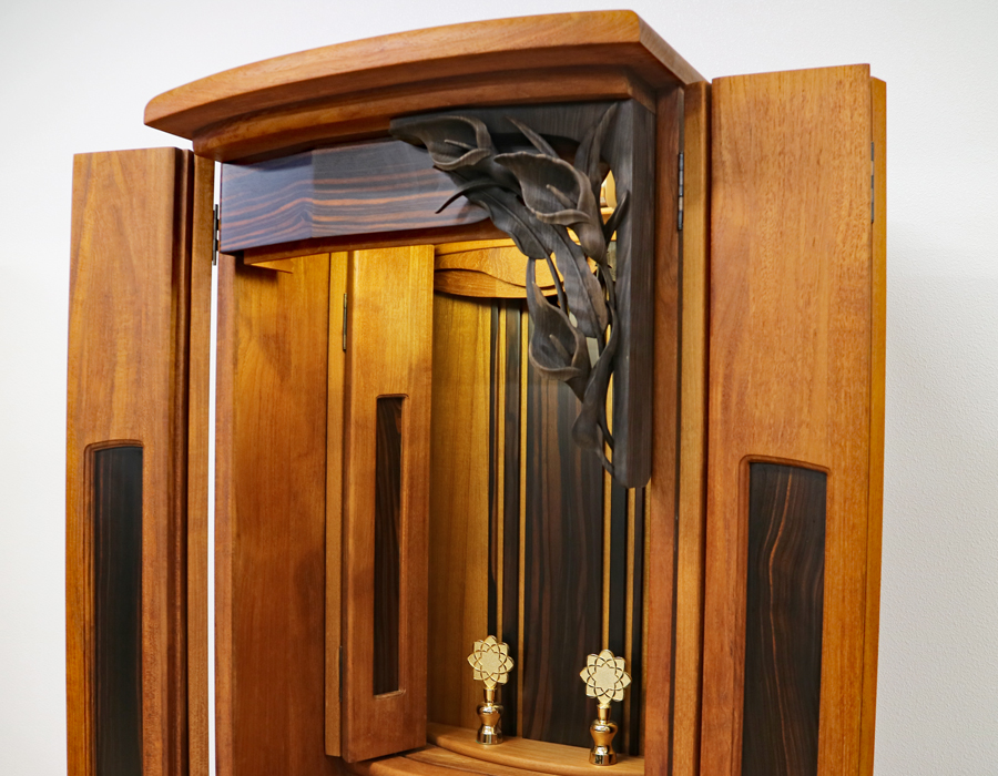 これほど本黒檀を彫に使用された家具調仏壇は同じ金剛堂さんの野ぶどう以外は有りません。