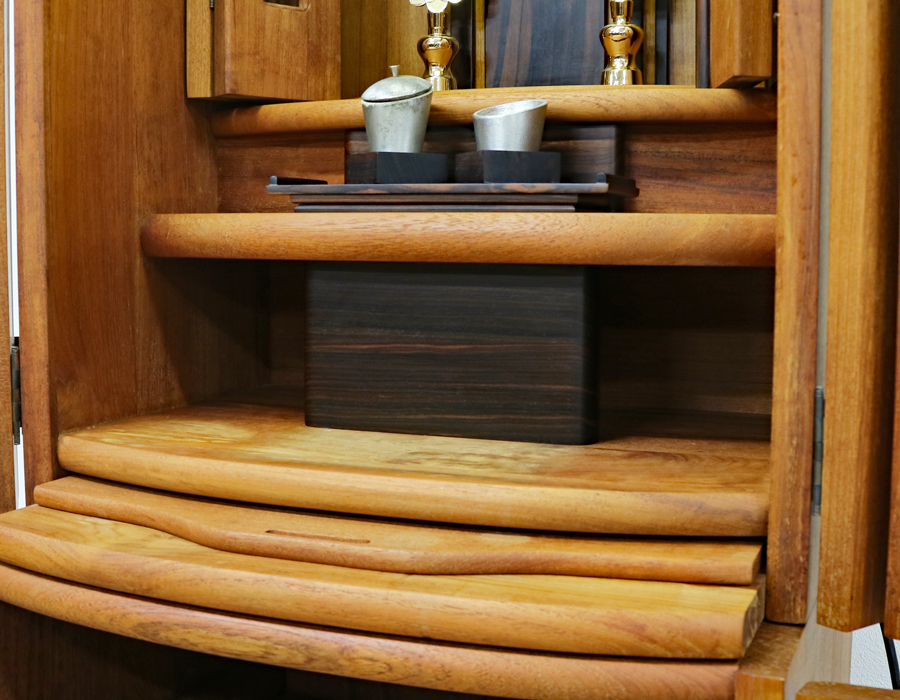 厨子内はチーク材をふんだんに使用した木のぬくもりを感じるようなデザインとなっております。