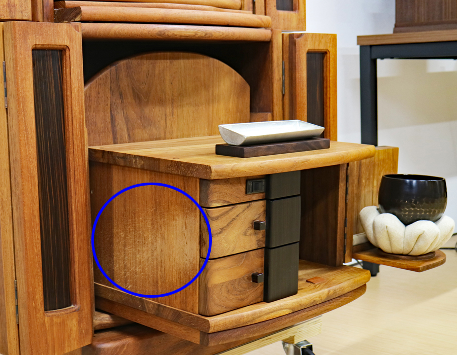 仏壇下部に引き出しが3箇所ございます。