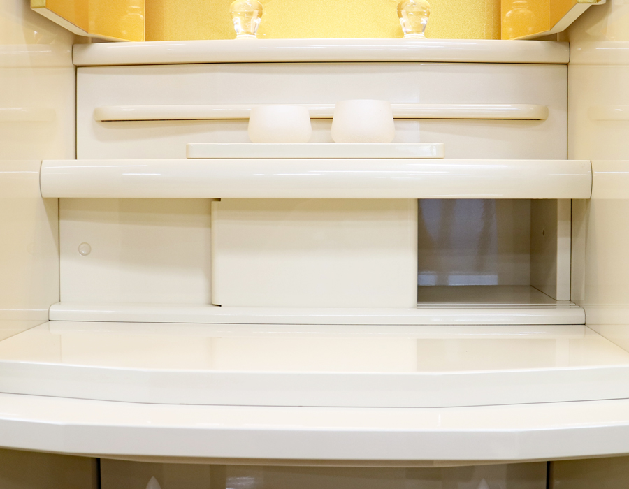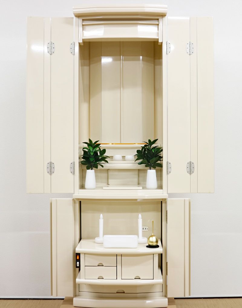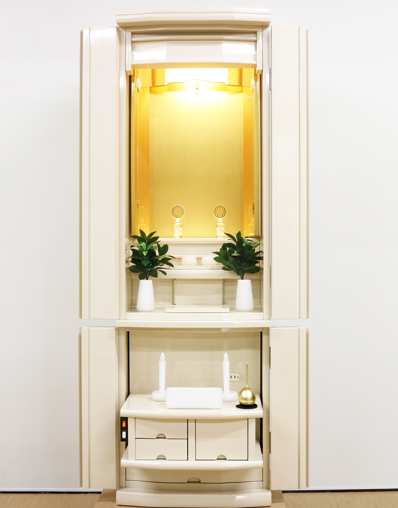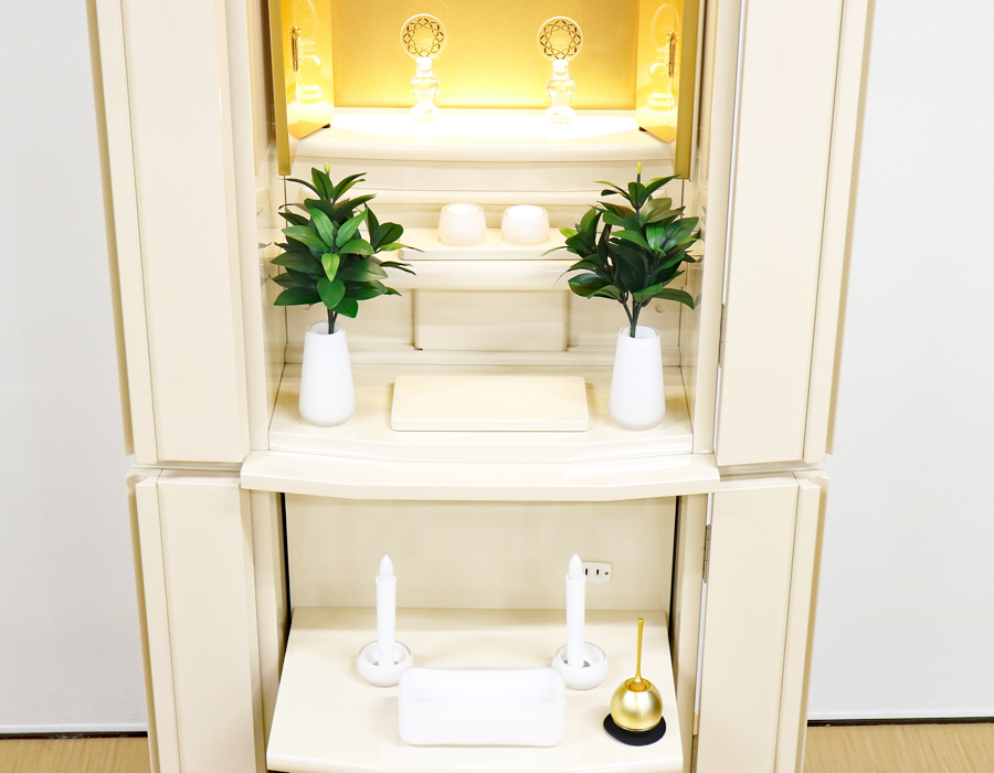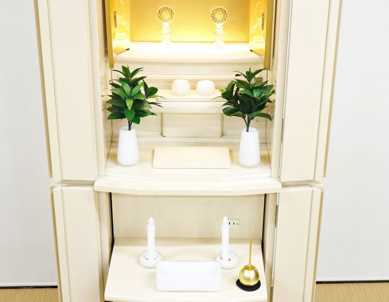 パールホワイト塗装を施した上品なデザインの仏壇です。 使用期間も約3年と浅く、非常に状態のいい商品になります。 和室・洋室・リビングダイニングにも最適です。