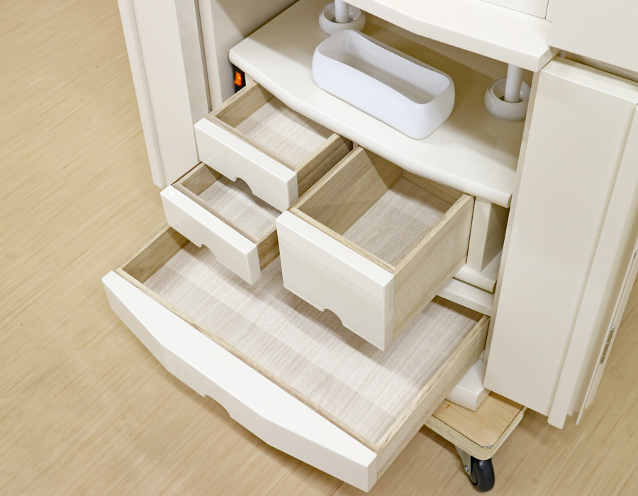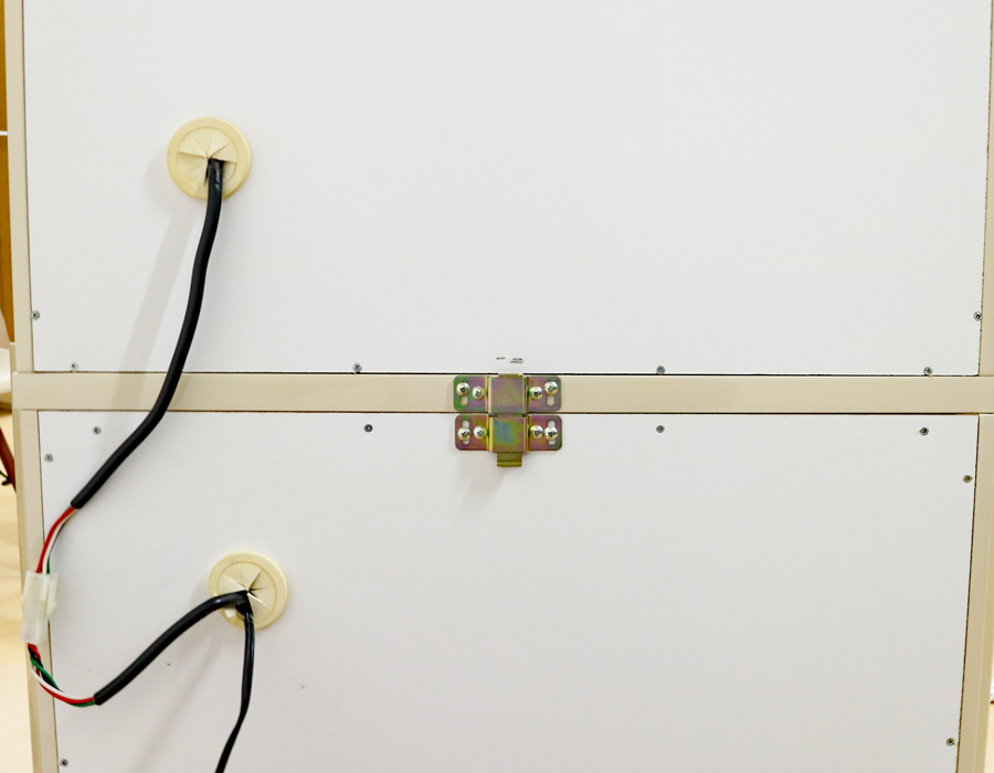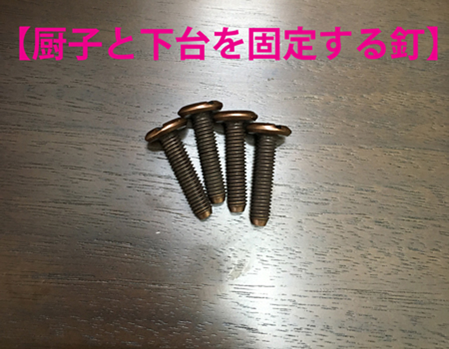 収納経机の上の部分に4か所穴がございますので、そこにネジを入れ、閉めることで上台と下台が固定されます。