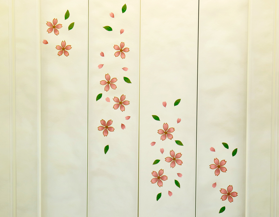 厨子扉には、静岡県に伝わる伝統技法「駿河蒔絵」で風に舞う綺麗な流れ桜の蒔絵が施されております。