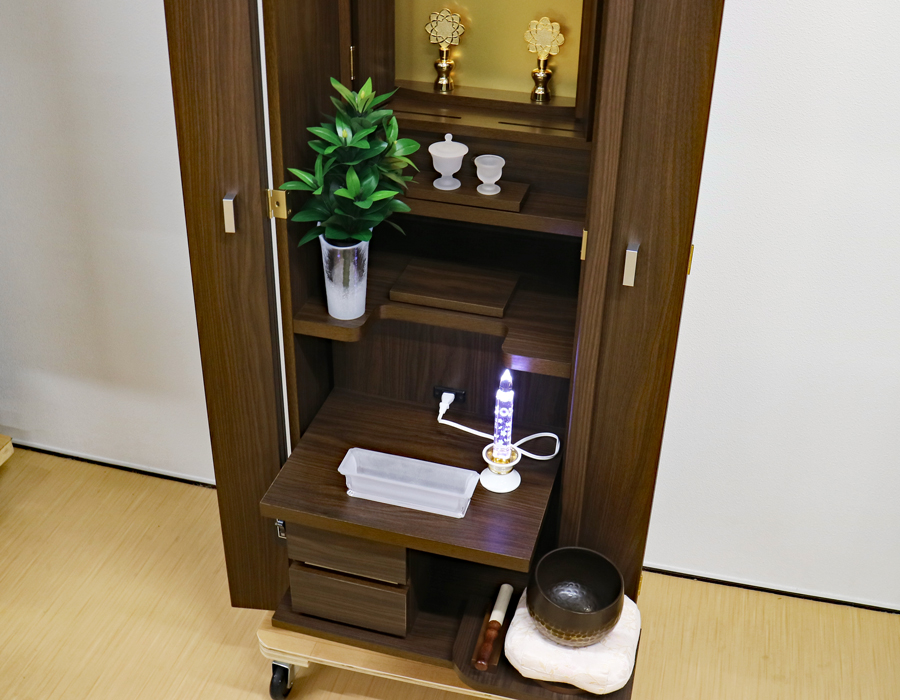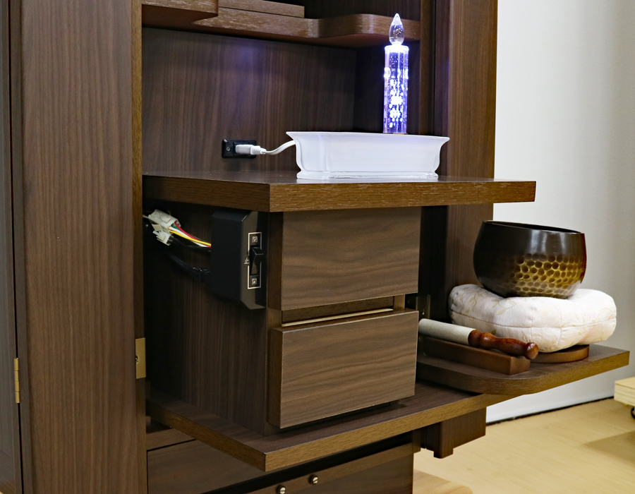 内部にはLED照明も付属していますのでご本尊様を明るく照らしてくれます。