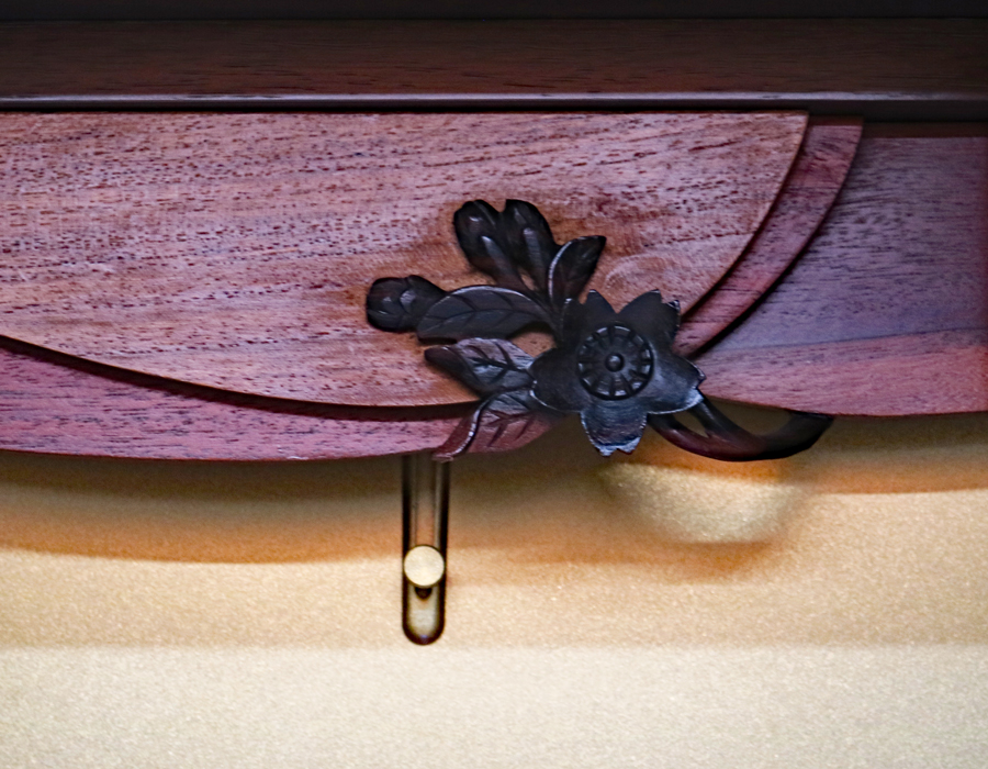 厨子上部にある桜の彫刻はオシャレな雰囲気漂うデザインに仕上がっております。