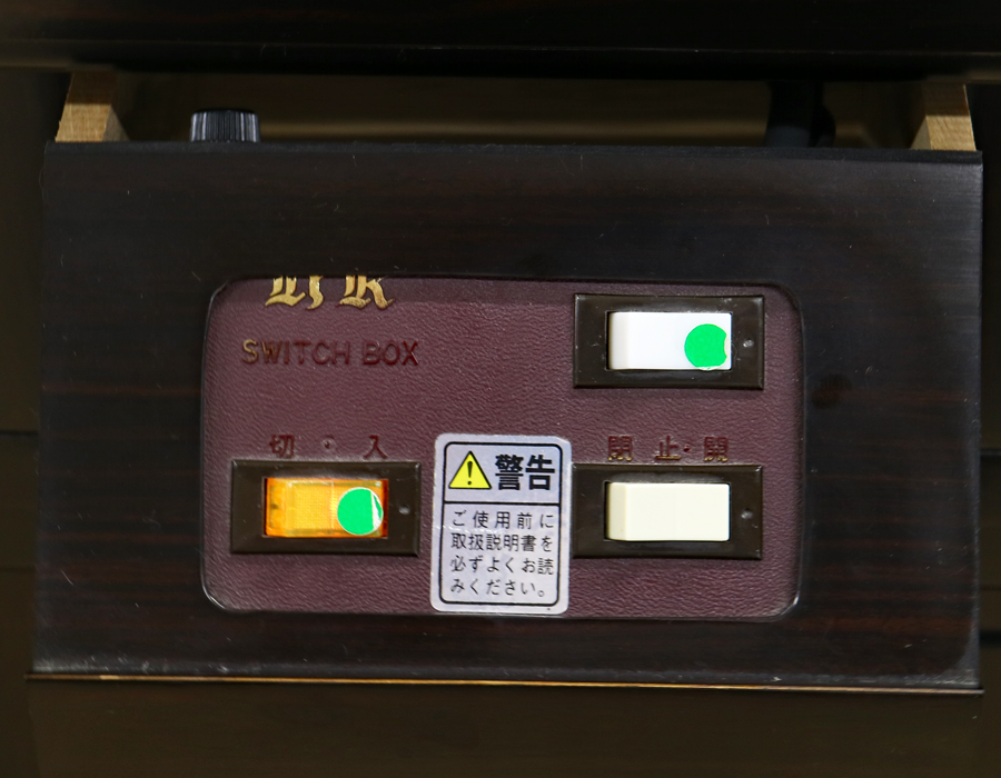 上の白いボタンが厨子扉の開閉、下の白いボタンが大戸の電動開閉になります。