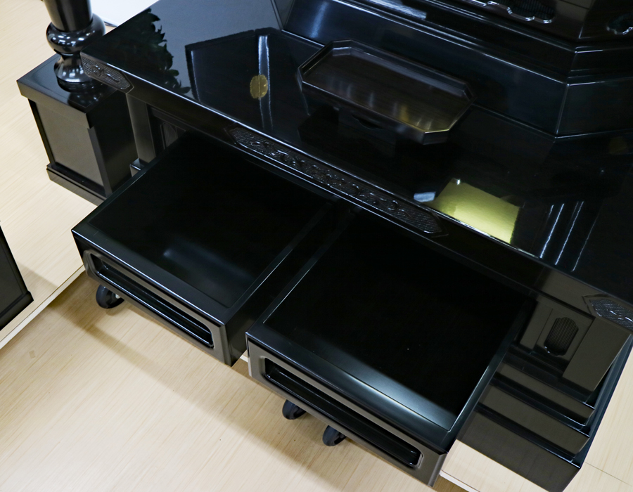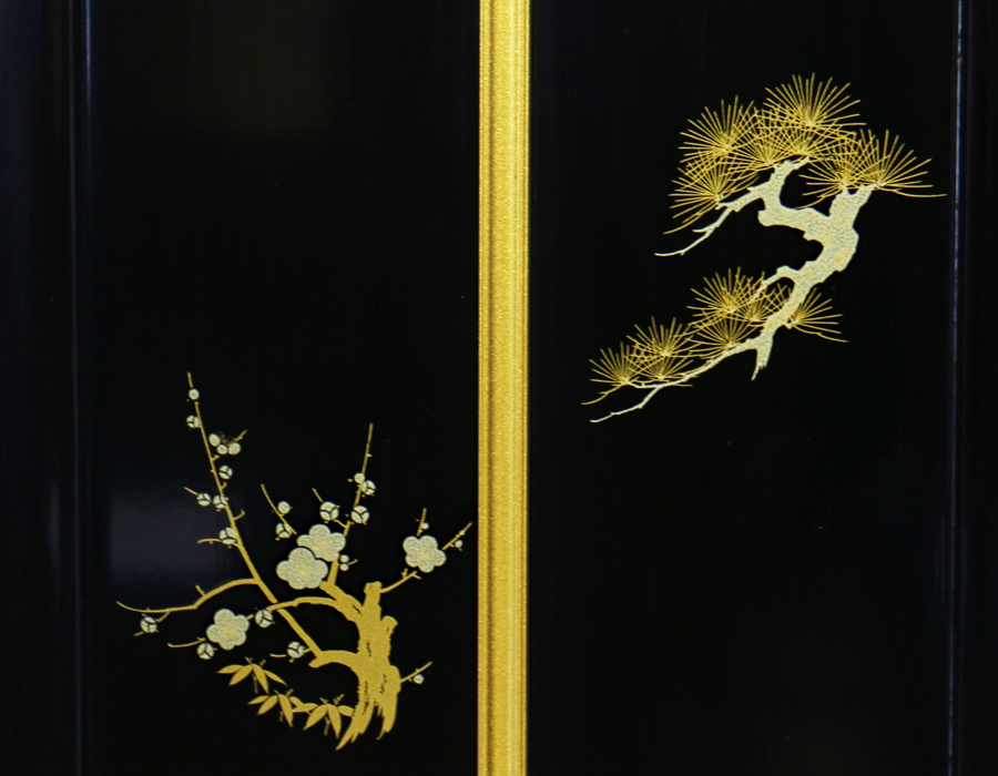 厨子扉には松と桜の蒔絵が施されており、お仏壇をより荘厳にしてくれます。