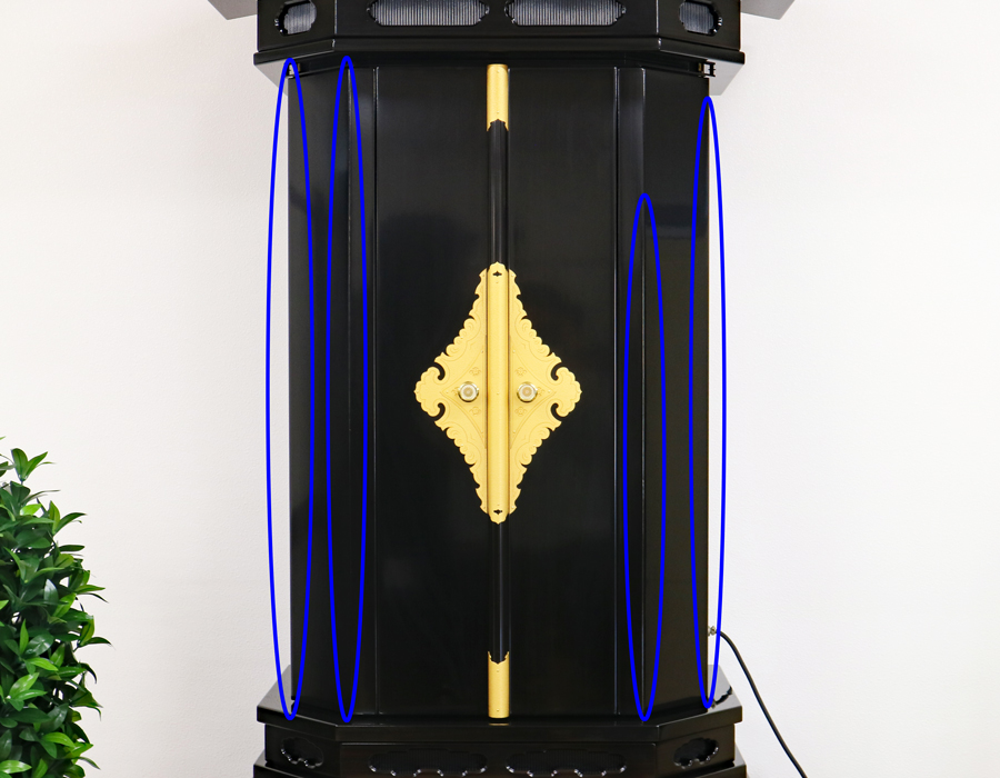 欄間裏に10wの蛍光灯・厨子奥に4wの蛍光灯が設置されております。