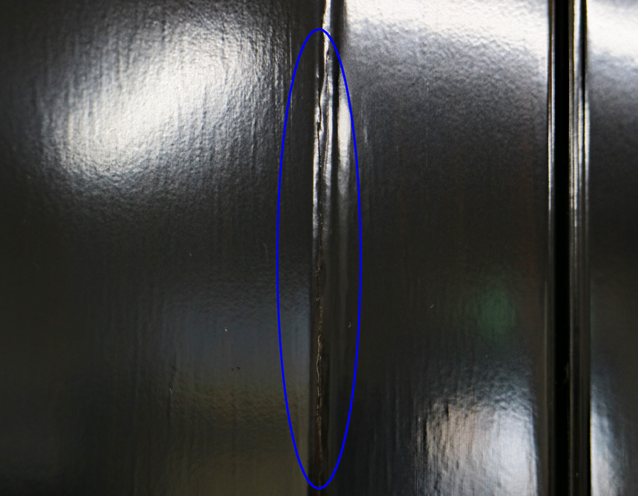上記お写真の青丸の箇所(大戸の角の部分)に薄いひびがございます。