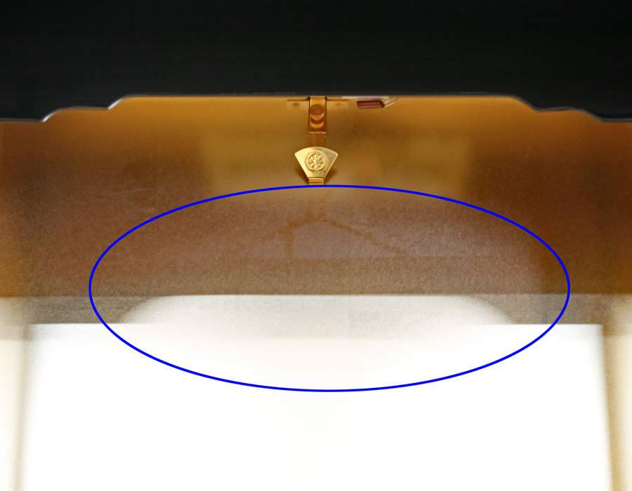 上記お写真の青丸の箇所に日焼けの跡がございます。