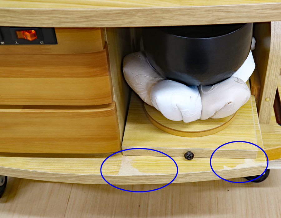 収納リン台に上記お写真の擦り傷がございましたので着色いたしました。 ※着色後のお写真になります。