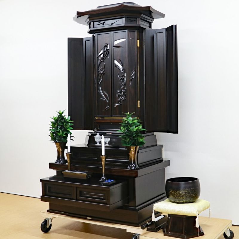 現在でも金剛堂さんにて、仏具付価格1,209,920円で販売中の「25本黒檀白ゆり」の中古仏壇です。