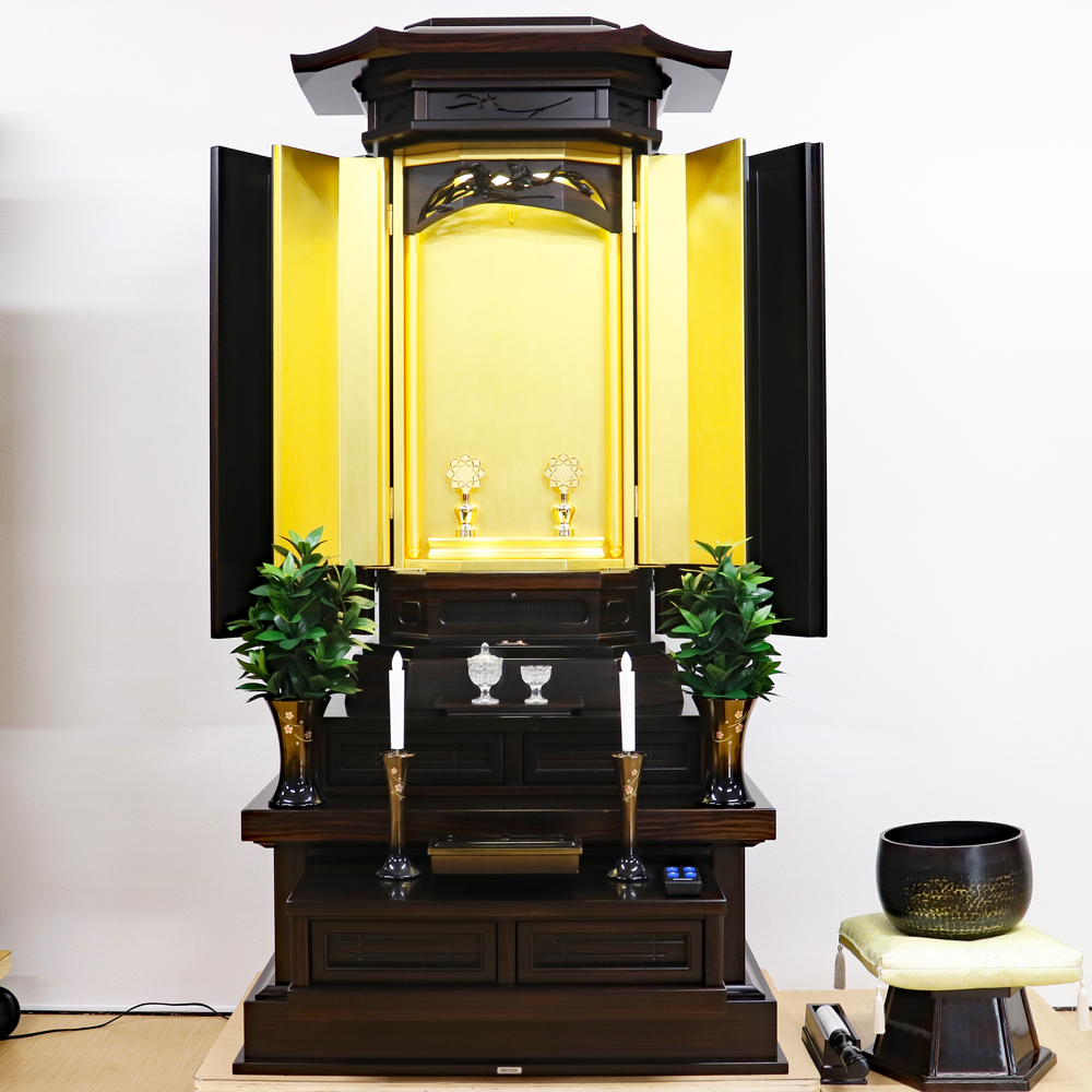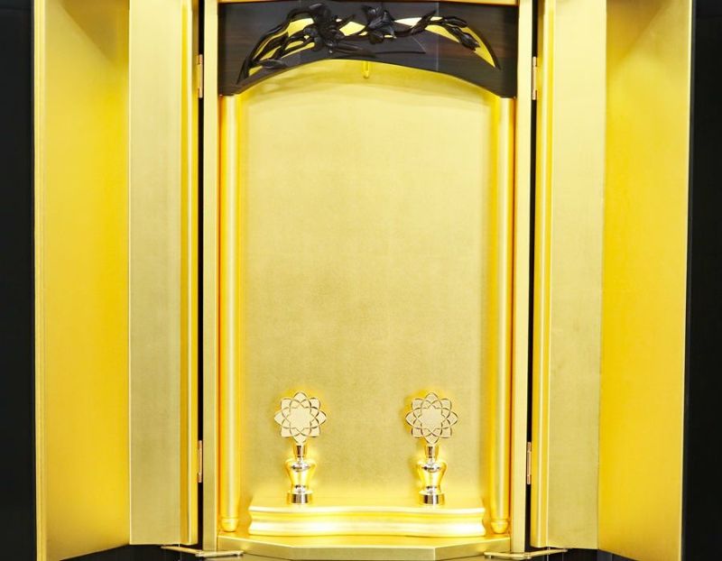 お厨子は本金箔厨子となります。本金箔と金色塗装では輝きが違うのは一目瞭然です。