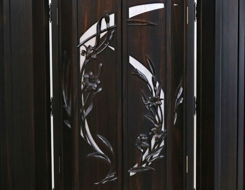 黒檀の無垢板をふんだんに使用して、白ゆりの彫りを立体的に仕上げております。