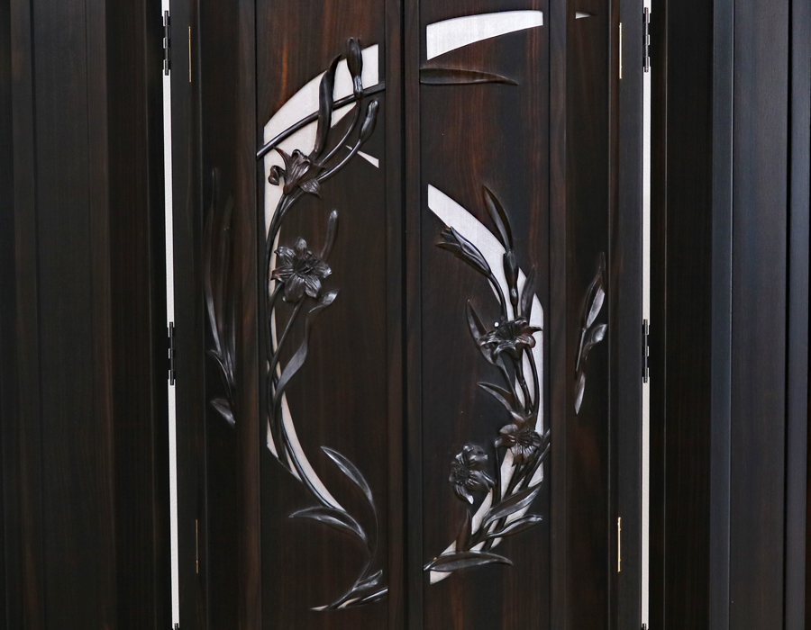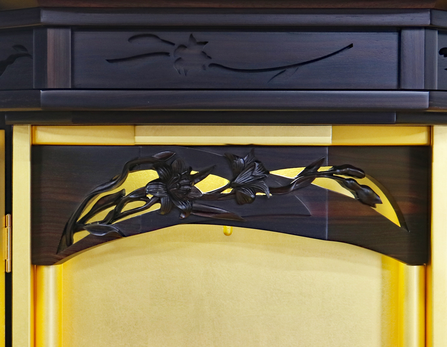 厨子扉にも、職人こだわりの白ゆりの彫が施されております。