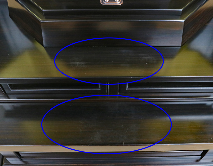 上記お写真の部分(中台と下台の天板)に仏具による擦れが見られます。