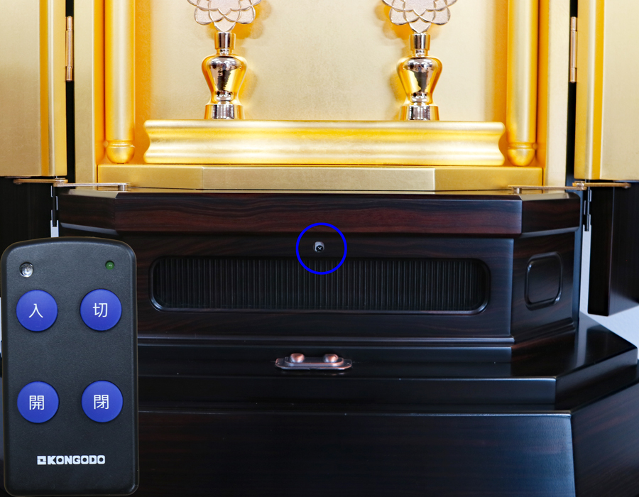 上記お写真の青丸の箇所にリモコン受信機がございます。