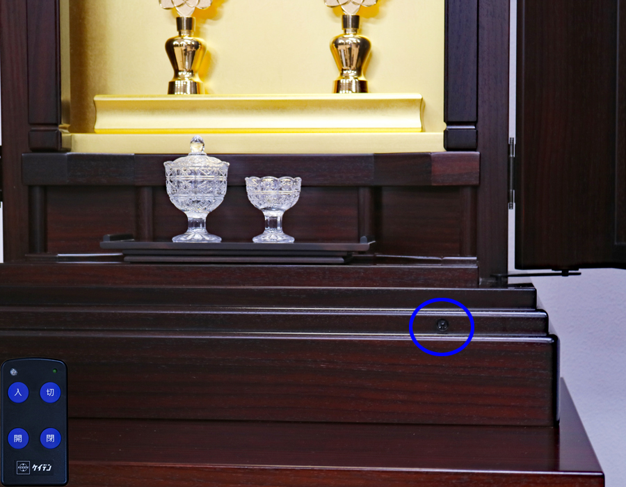 ※お仏壇下台から出ているコンセントは上台のコンセントに差し込んでください。